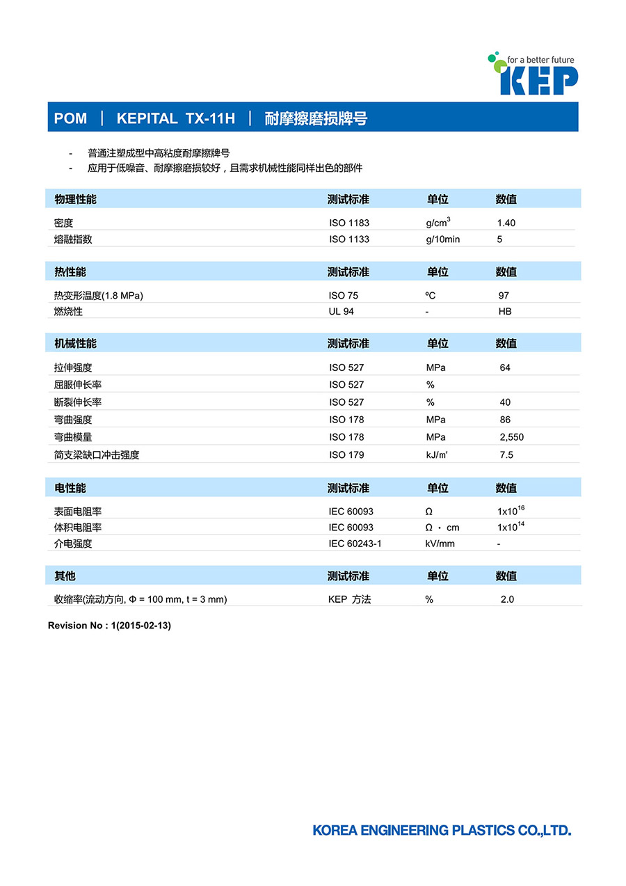 - 普通注塑成型中高粘度耐摩擦牌號- 應用于低噪音、耐摩擦磨損較好,且需求機械性能同樣出色的部件